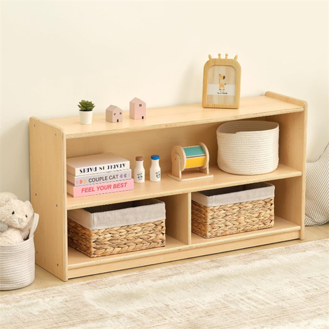 बहु कार्यात्मक मोंटेसरी बुक शेल्फ 2-शेल्फ मोंटेसरी शेल्फ खिलौना आयोजकों और बच्चों के लिए भंडारण